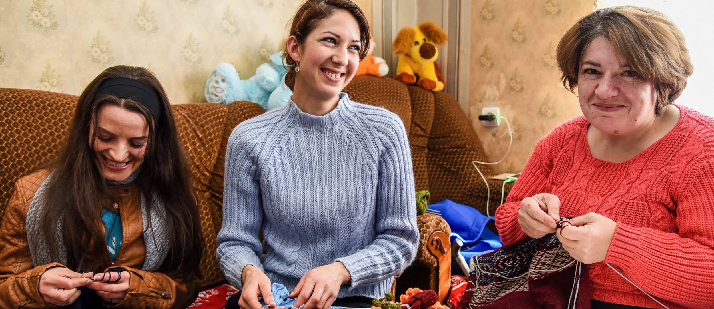 Manushak has established a knitting group with women from Goghovit and the surrounding villages. If they complete her training program, she employs them in her business, Goghovit Knits. These women, including Manushak who is physically disabled, use knitting techniques that have been handed down for generations. Manushak has helped empower local women with much needed income in a very poor and remote community. Manushak and her team produce hats, sweaters, scarves, socks, and pillow covers for HDIF.